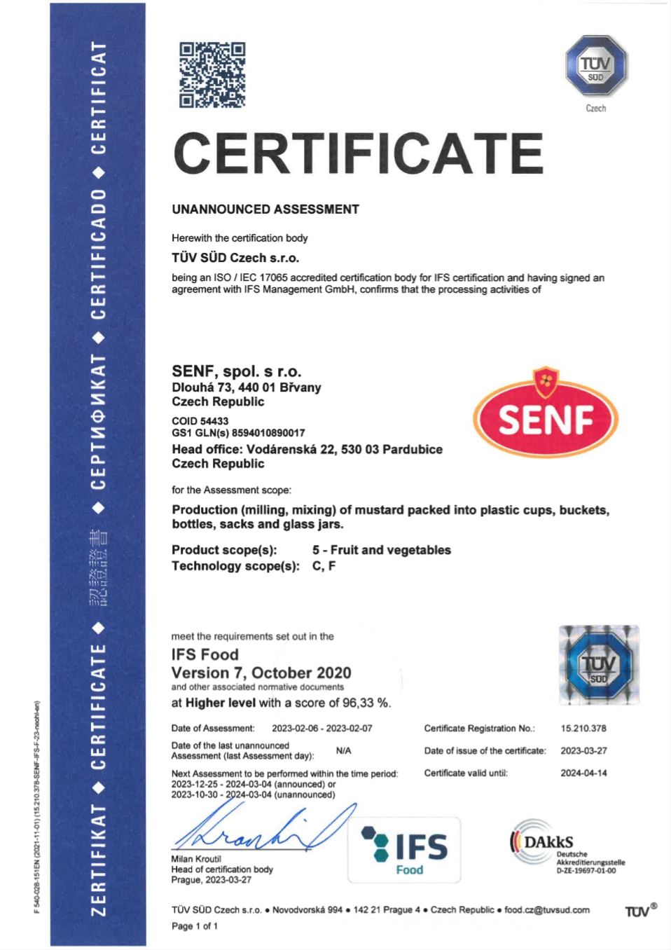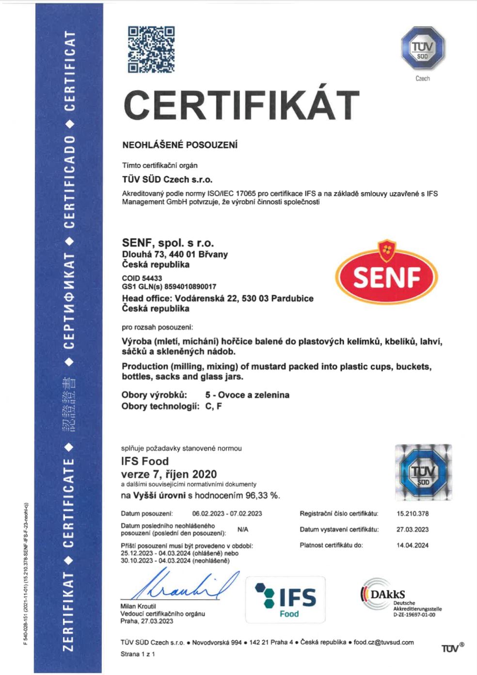 “Senf spol. s.r.o. was founded in 1992. In the production of mustard, the company followed the traditional production of mustard in the region, and even today we produce according to the traditional Czech recipe and with ingredients from Czech suppliers. The quality of our products is appreciated by satisfied customers in the Czech Republic, Slovakia and Hungary, and our total production ranks us among the largest companies involved in mustard production.”